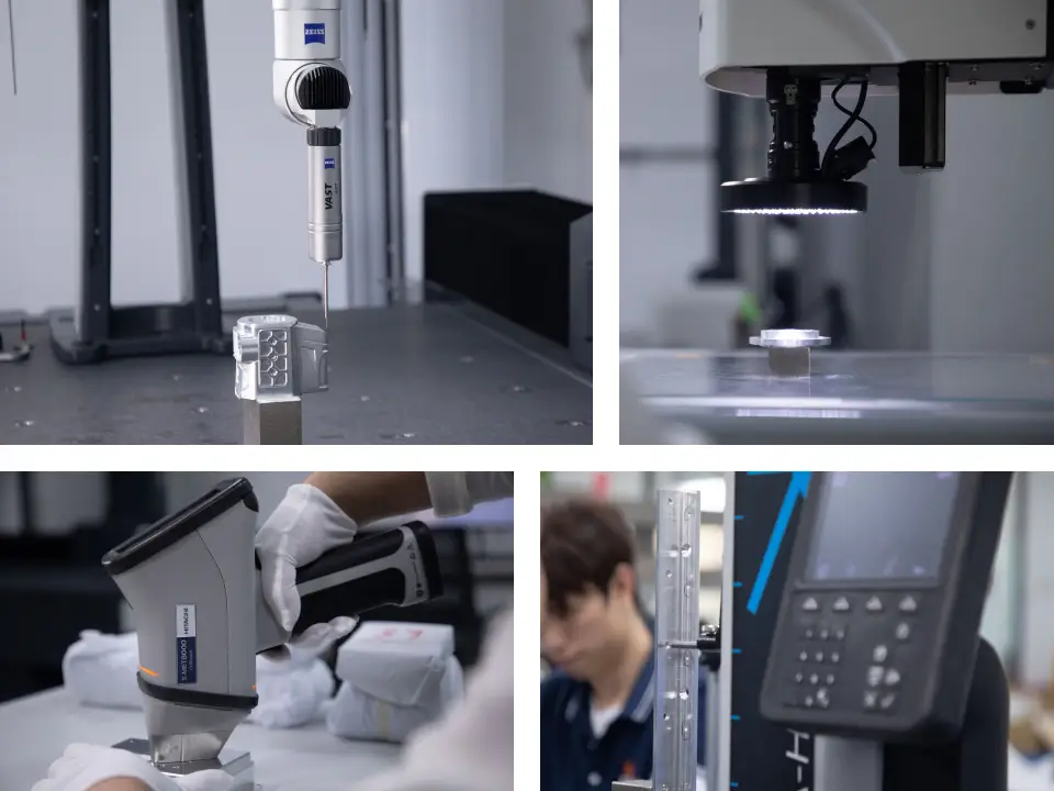 We measure key dimensions like cross-section width, height, wall thickness, total length, straightness, flatness, perpendicularity, and fit of holes or slots. Inspection tools include calipers, micrometers, height gauges, and coordinate measuring machines (CMM).